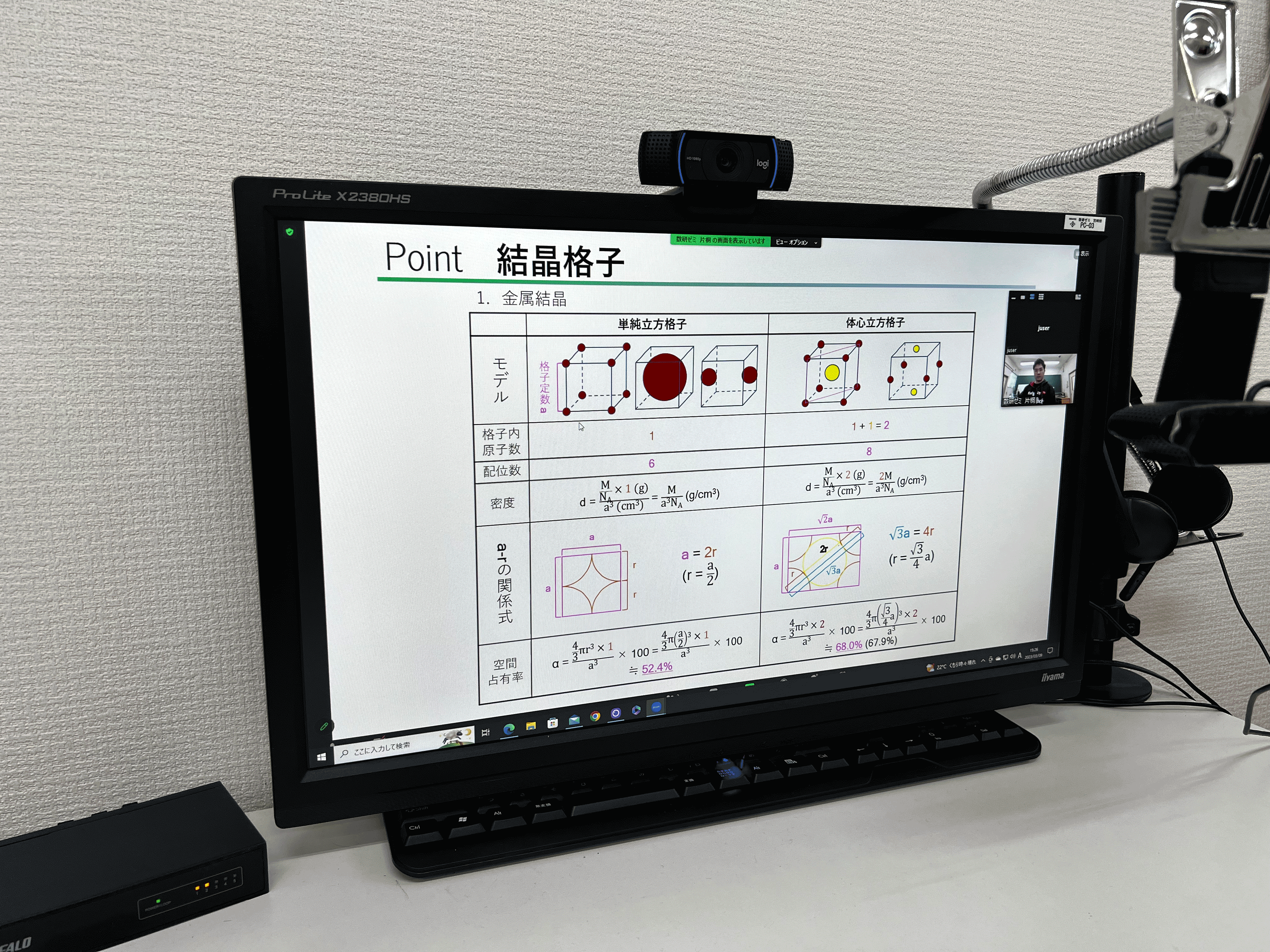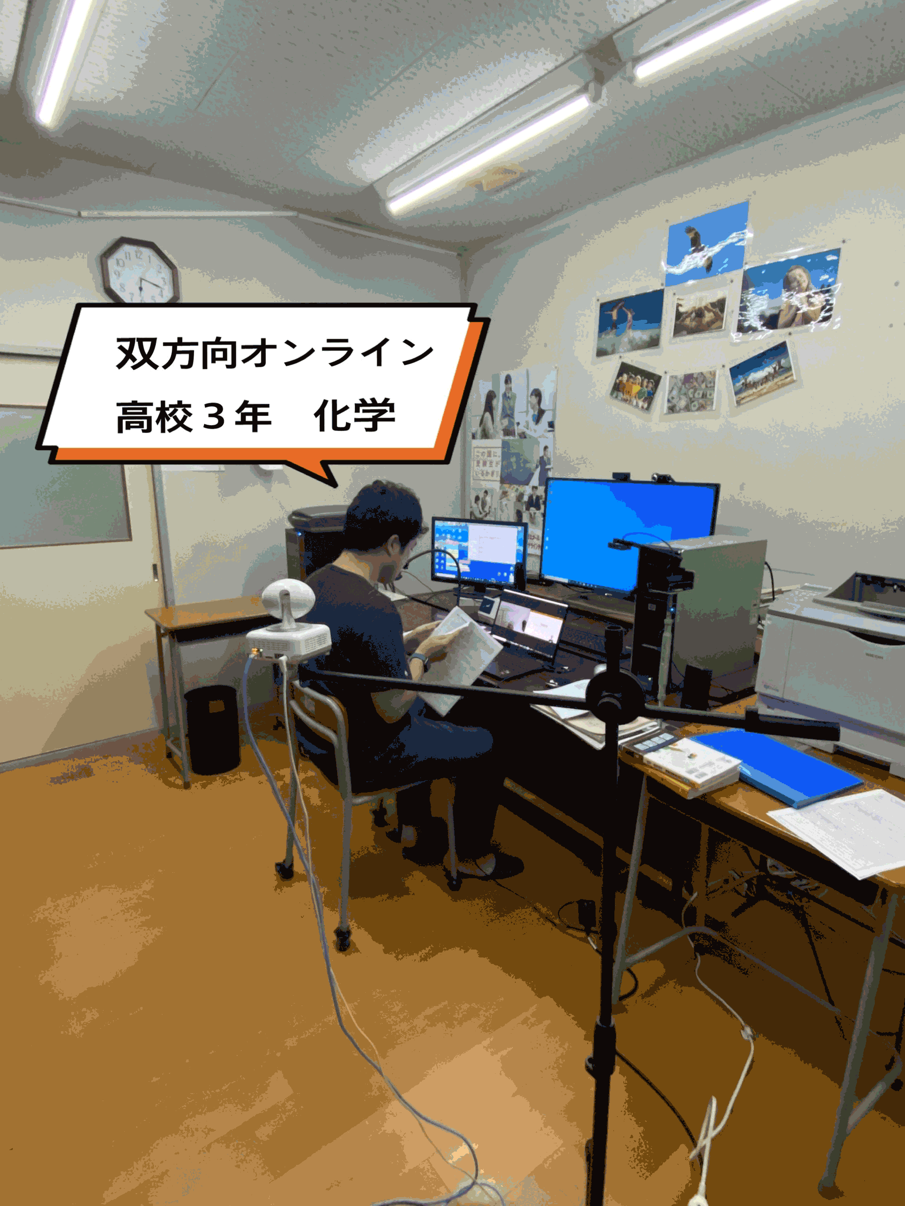 zoomによる化学のマンツーマン指導です。人数制限で指導を行っております。